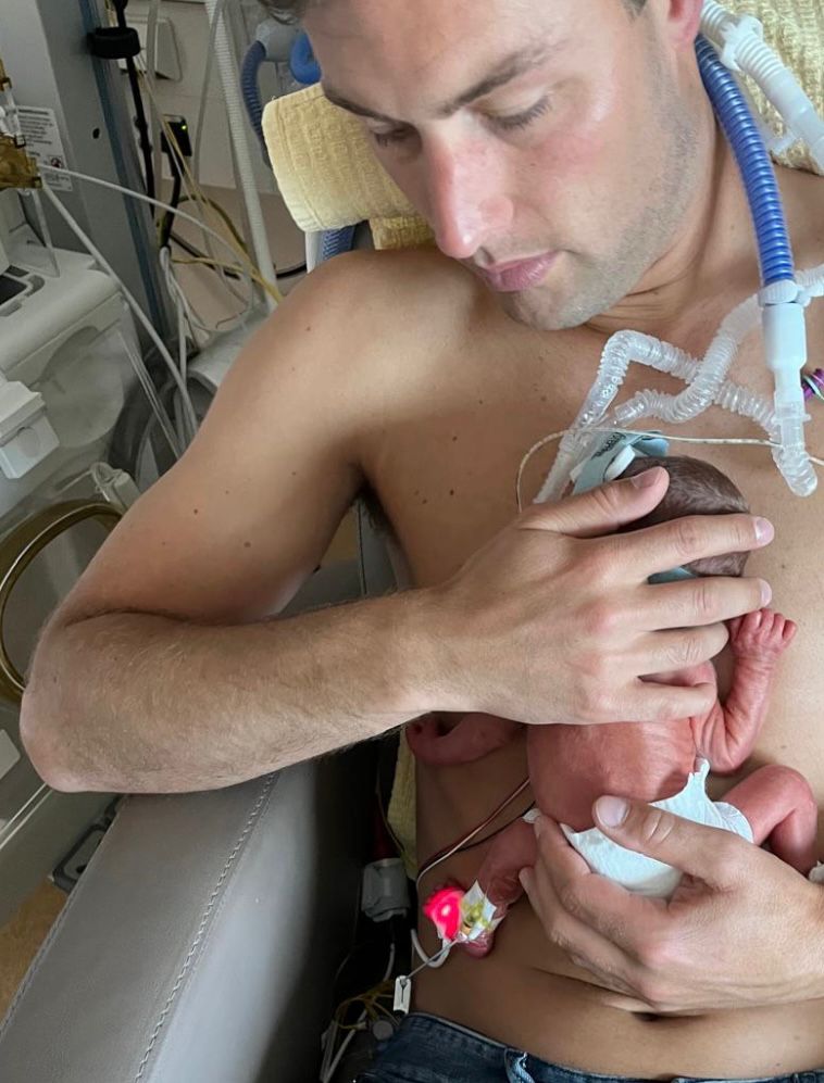 Karlijn: “We mochten Sem een kusje geven en na de controles moest hij met de ambulance naar het Emma Kinderziekenhuis. Bij het Centrum voor geboortezorg waren ze ontzettend lief voor ons. Ondanks de schrik en de angst, ging het na de bevalling fysiek goed. Ze hielpen mij om me klaar te maken, we aten nog een beschuitje en daarna zijn we achter Sem aangegaan.”